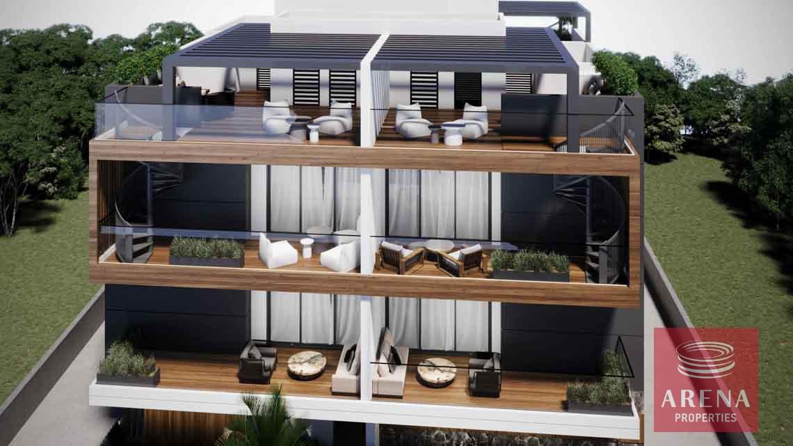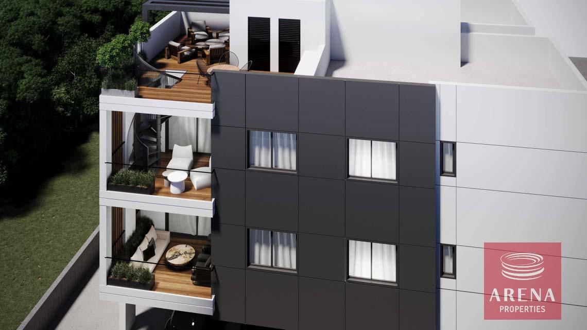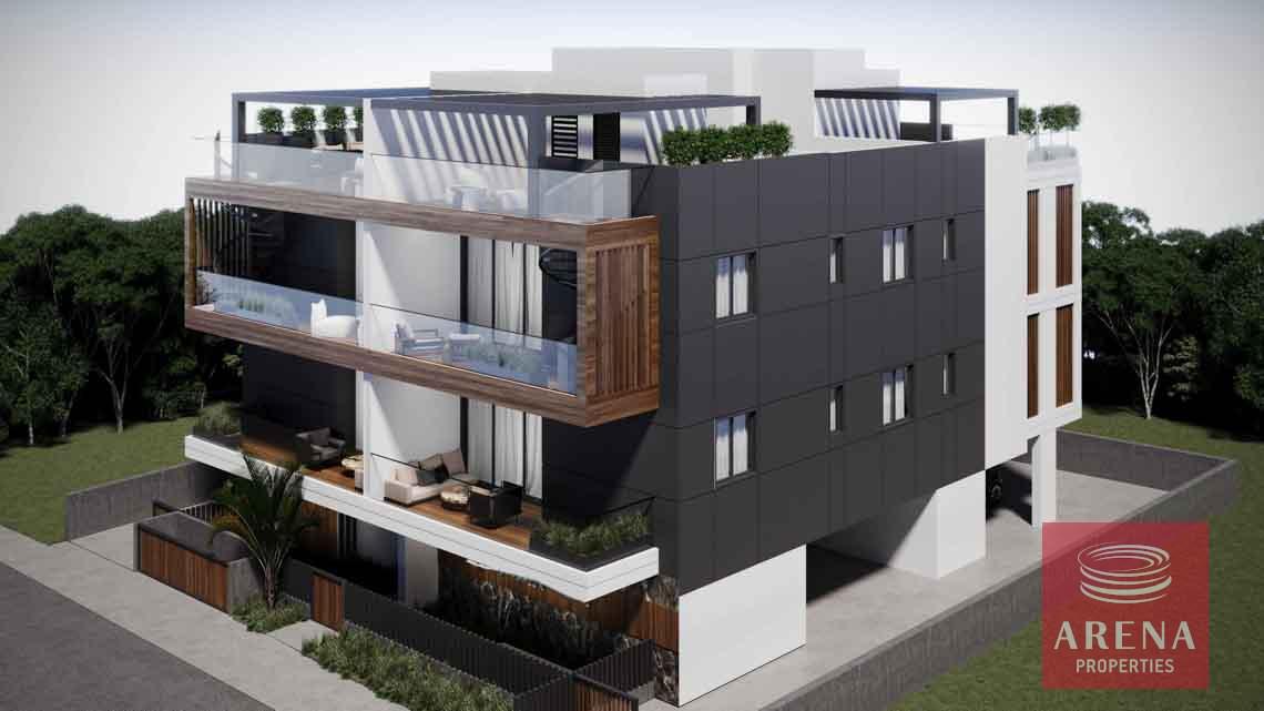 Six Apartments, three of them are two bedrooms & two bathrooms and the other three are Penthouses All of them have a large living room unified with the kitchen. Moreover, there are big verandas with an unobscured view overlooking to Larnaca downtown & each flat benefits from a storage room at the ground floor with covered car parking.