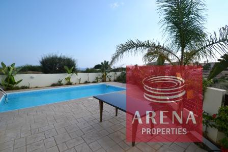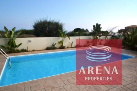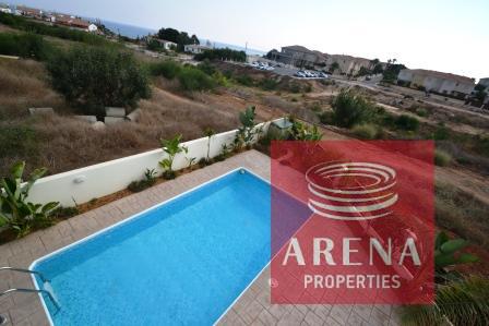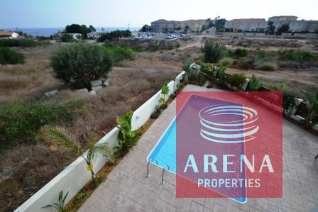 This property is for sale in the area of Kapparis, Cyprus, This 3 bedroom detached villa has private covered parking and swimming pool with large patio area, inside you will find open plan kitchen with breakfast bar through to dining area with lounge and fireplace and guest WC on this level, upstairs you will find 3 good sized bedrooms with fitted wardrobes and a main family bathroom, the master bedroom has en-suite facilities and access to upstairs balcony where you can enjoy the open Sea View, this property is close to the beach and is within easy walking distance to local amenities where you will find local shops, bars and restaurants.